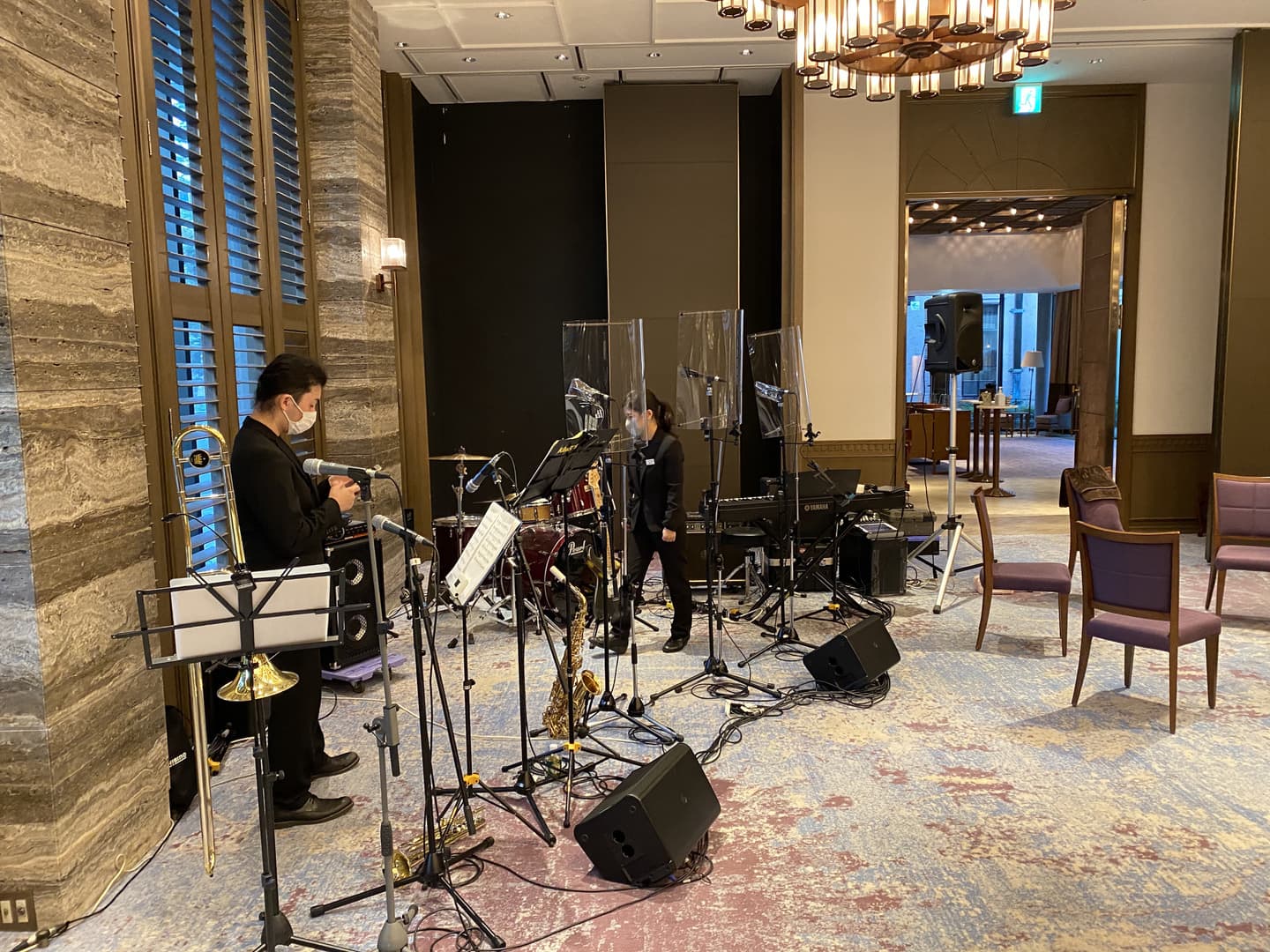 ただ、一般的にホテルなどのパーティー会場の常設設備はバンド演奏等を前提にしておらず、また生演奏に対応できる技術を有したスタッフもいません。これは地域のお祭り等でも同様です。
